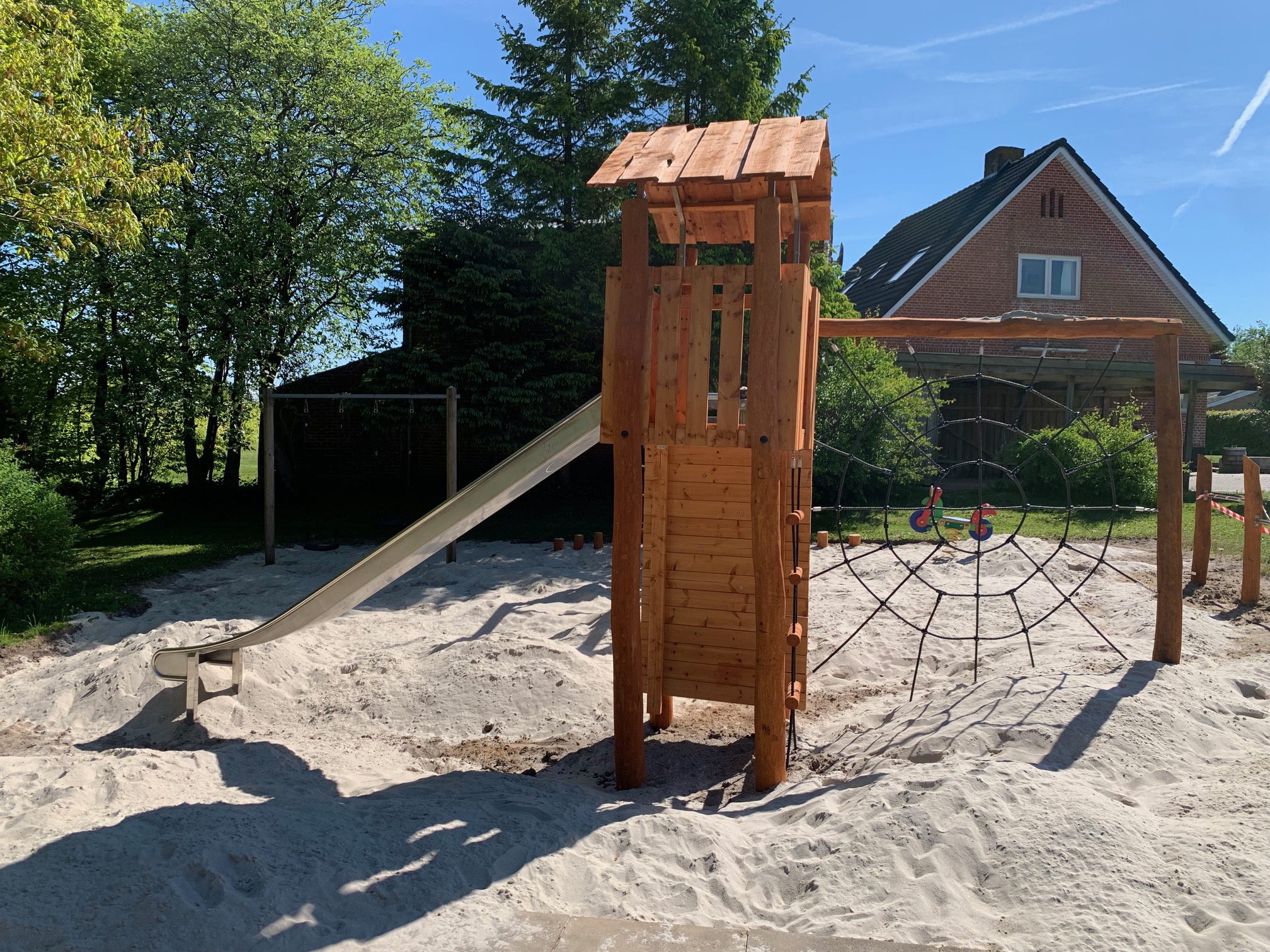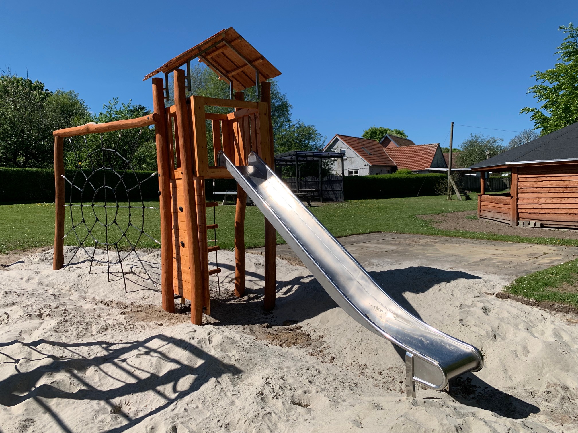 Flot klatresystem lavet med robiniastolper, som er behandlet én gang med gylden cedertræsolie.